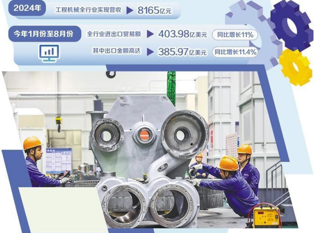 中国工程机械工业协会的最新数据显示,海外市场已经成为行业重要的增长点。今年1月份至8月份,全行业进出口贸易额403.98亿美元,同比增长11%,其中出口金额高达385.97亿美元,同比增长11.4%,远超18亿美元的进口金额,贸易顺差优势持续扩大。